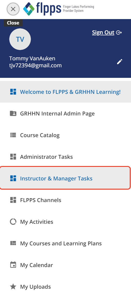 From anywhere in the LMS, navigate to the top left of your window and find the hamburger menu pictured here: